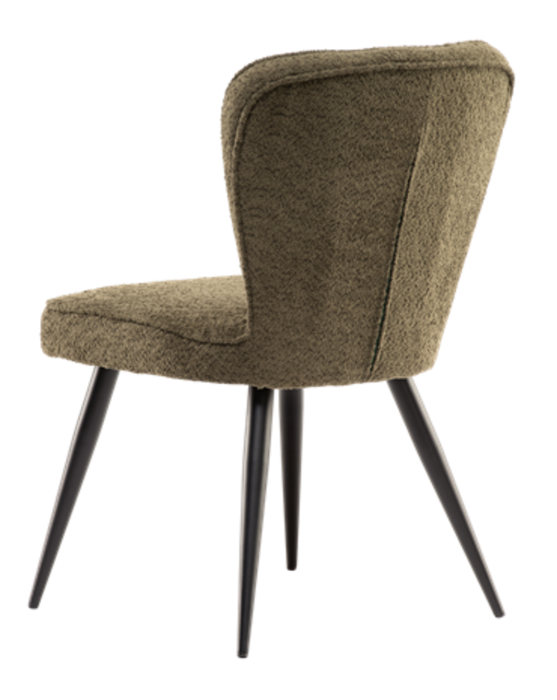 The Favela Olive Dining Chair brings a touch of mid-century charm to modern interiors, featuring a plush, textured olive fabric that’s both stylish and comfortable. Its gently curved backrest and cushioned seat provide excellent support, while the tapered black metal legs add a sleek, contemporary edge. Perfect for dining rooms or statement seating areas, the Favela chair combines soft, inviting upholstery with bold design, making it a versatile addition to any modern or retro-inspired space.